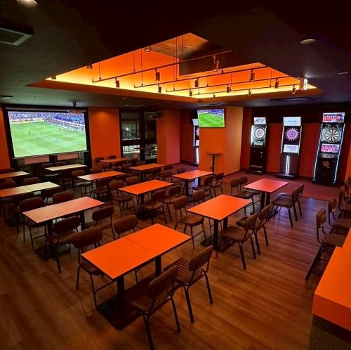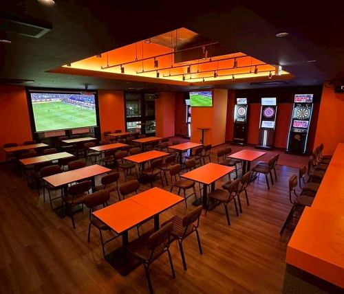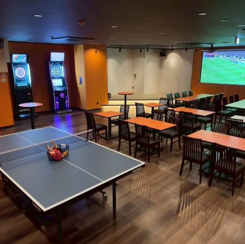 貸切30名様~最大150名様!営業時間外の貸切も大歓迎♪お気軽にお問い合わせください。ダーツ10台・卓球2台・120インチ大型スクリーン・店内複数モニター・プロジェクター・音響機器・ステージ・マイク・カラオケ
